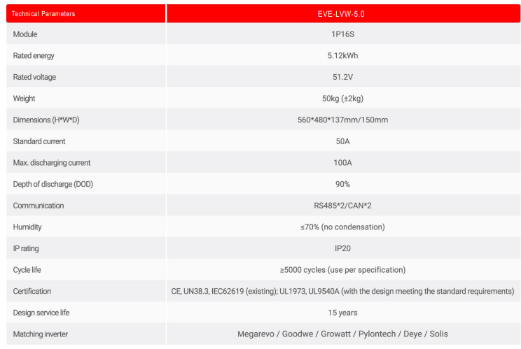 | Technical Parameters | EVE-LVW-5.0 |